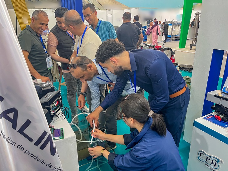 此外,润新公司还开展了2场技术培训活动,向阿尔及利亚当地客商介绍润新公司发展近况和产品矩阵,重点介绍润新自动控制阀端口应用、润莱家用软水机及其增值功能和润景叠片式过滤器、陶瓷硬密封水力控制阀、出水桩阀、底阀等新产品的结构特点,分享产品应用案例。