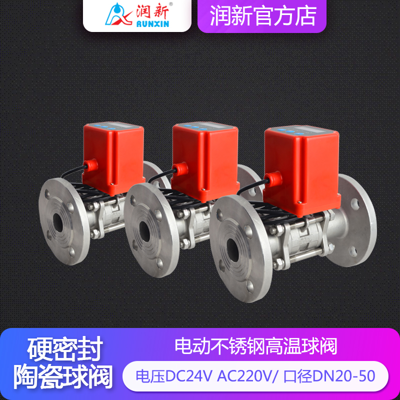 润景陶瓷芯·断电复位三线独立执行器不锈钢耐腐蚀球阀