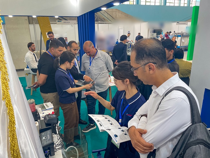 现场进行的手压超滤净水器功能演示吸引许多客商驻足观看,客商们咨询产品工作原理、功能、材料、适用场景等情况,表示润莱手压净水器无需用电、携带方便,很符合当地市场需求。