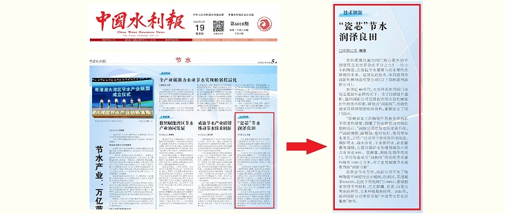 《中国水利报》报道润新:“瓷芯”节水 智润良田
